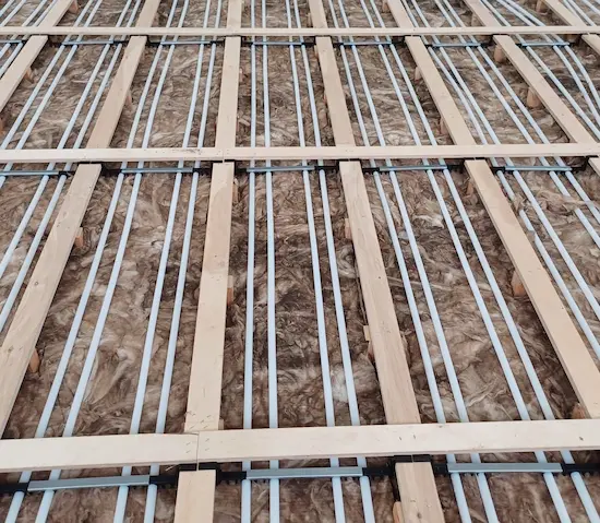 • Die Heizungsrohre werden direkt im Hohlraum unter der obersten Lattung und den Trägerplatten installiert